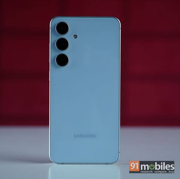 Galaxy S24 FE menawarkan desain minimalis dengan cincin kamera yang ditempatkan satu per satu di bagian belakang ponsel. Lampu kilat LED terletak dekat di sebelah cincin kamera, dengan branding “Samsung” terukir halus di bagian bawah panel belakang. Tepinya datar untuk memberikan pegangan yang nyaman, dan sudut-sudutnya melengkung dengan baik untuk membuat area jauh layar dapat diakses dengan satu tangan. Ponsel ini hadir dalam tiga varian warna; mint, biru, dan grafit. Kami menerima varian warna mint untuk ditinjau.