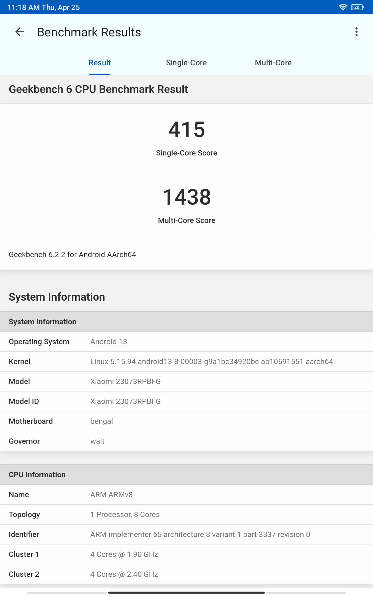 Sayangnya, kami tidak dapat menjalankan tes AnTuTu pada tablet ini karena masalah kompatibilitas, di Geekbench. Akan tetapi, Redmi Pad SE mendapatkan skor 415 poin dan 1.438 poin pada tes single-core dan multi-core. Hal ini seharusnya memberikan gambaran bahwa tablet ini tidak ditujukan bagi power user. Bukan berarti Anda tidak dapat menikmati bermain game di perangkat ini. Tablet ini mampu menjalankan game yang menuntut grafis tinggi seperti Real Racing 3. Setelah setengah jam bermain game, terjadi peningkatan suhu sekitar 7 persen dan penurunan daya tahan baterai, yang merupakan hal yang normal.