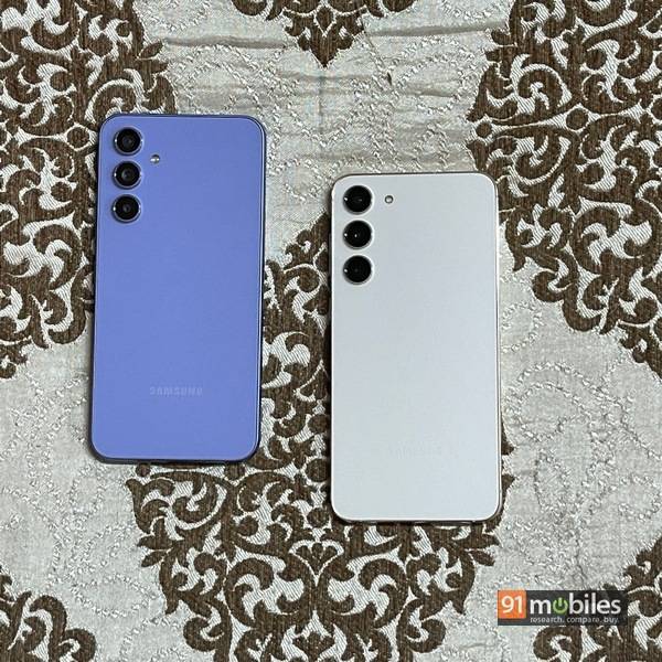 - Melihat dari sisi luar, Galaxy A54 sekilas cukup mirip dengan ponsel premium Samsung S23 (review). Sebagai peningkatan dari seri lama, A54 memiliki panel Corning Gorilla Glass 5 di bagian depan dan belakang dalam upaya memberikan nuansa premium di tangan. Terdapat tiga cincin kamera yang berdiri sendiri, tanpa casing apa pun, mengingatkan kita pada seri premium Samsung lainnya. Dan harus diakui pilihan desain ini saya hargai. Dalam hal berat, A54 menawarkan berat yang masuk akal yakni 202 gram dengan ketebalan sekitar 8,2mm.
