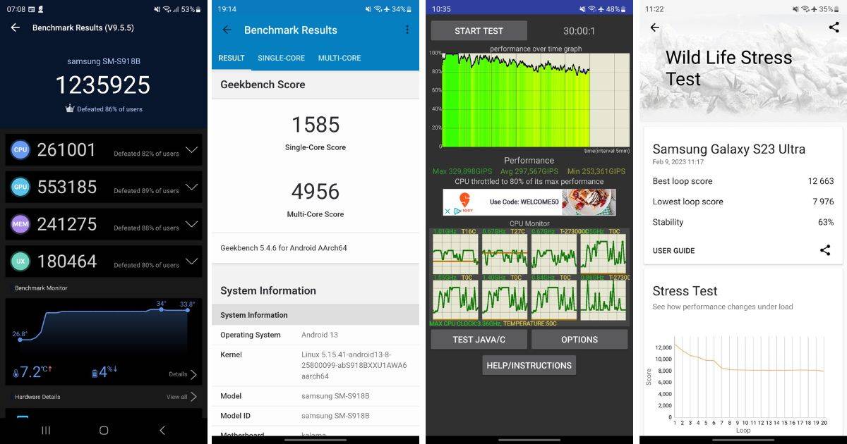 Berpindah ke area mesin, ada chipset terbaru dan terhebat Qualcomm Snapdragon 8 Gen 2 yang mendukung proses dalam Galaxy S23 Ultra ini. Smartphone unggulan ini menjadi ponsel ketiga di India yang mendapat chipset buas ini, setelah iQOO 11 dan OnePlus 11. Kemampuan chipset ini sudah terkenal tetapi Samsung mengatakan bahwa SoC dalam S23 Ultra sudah diubah secara khusus untuk memberikan performa dan efisiensi yang lebih baik. Akan sulit untuk mengukur performanya dalam dunia nyata, tetapi perangkat ini memberikan kinerja terbaik di berbagai kasus penggunaan – untuk aplikasi dasar, produktivitas, sosial, multimedia dan game yang butuh grafis.