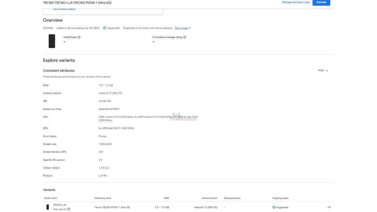 Beberapa hari lalu, Tecno Pova 7 Ultra 5G juga terpantau muncul pada laman database Google Play Console, sebagaimana dihimpun dari TheTechOutlook.com.