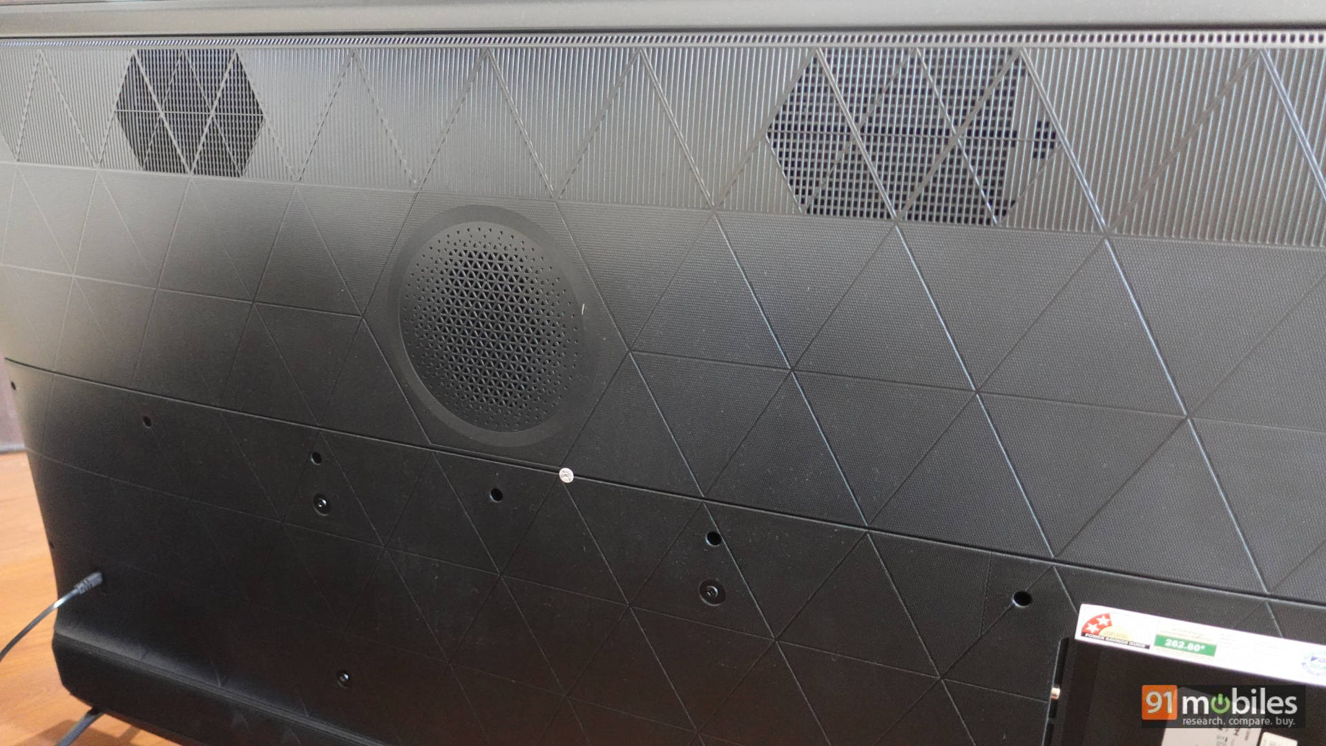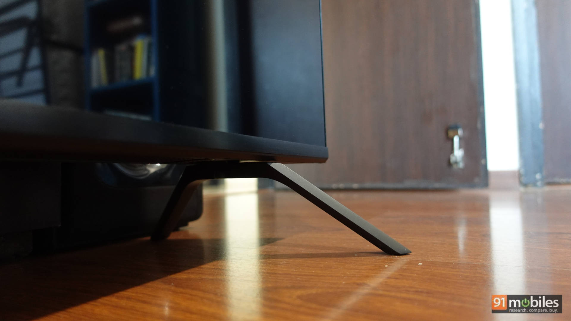 The TV is also quite slim for its price. It has two arched metal feet that hold it in place when kept on a tabletop. The feet hold the TV quite well and are angled to provide ample support for the large size. Overall, no complaints here.