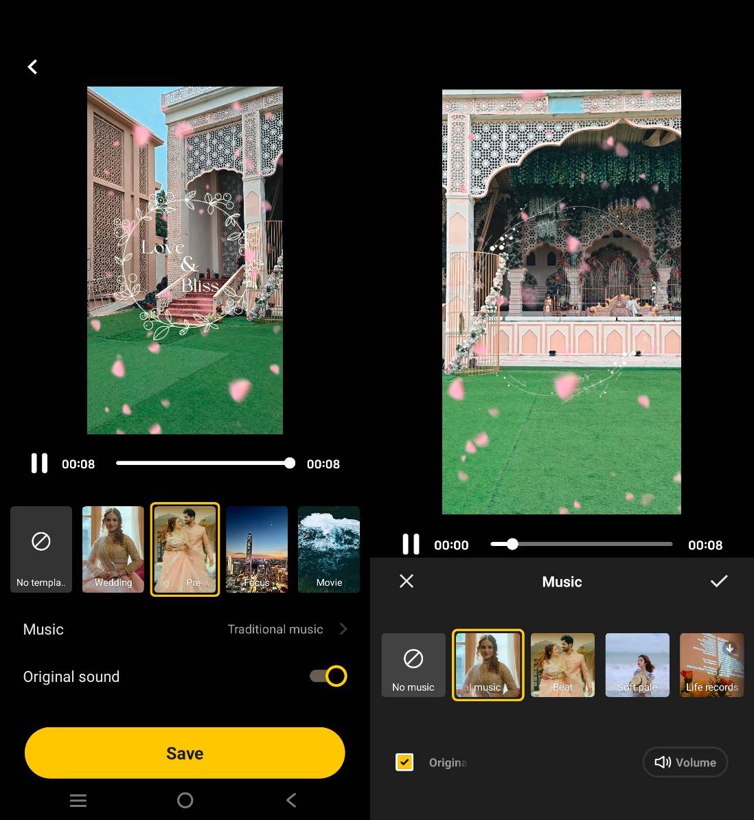The Wedding Vlog is part of the ‘Micro Movie’ mode, which lets you capture small, engaging videos with effects and music. These effects and music are automatically added to the Wedding Vlog filter to make them more enriching. The filter is ideal for capturing teasers or highlight moments from an event, saving the time you spend on post-edits before sharing them on social media platforms.