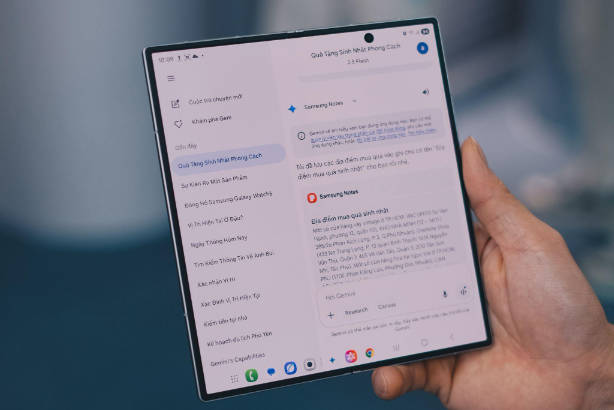 Đối với Galaxy Z Fold7, người dùng không chỉ có một chiếc điện thoại, mà còn có một trung tâm làm việc di động. Màn hình chính rộng rãi giúp xử lý đa nhiệm dễ dàng: từ chỉnh sửa tài liệu, trả lời email, đến tận dụng các tính năng Galaxy AI như dịch menu nhà hàng khi đi du lịch, tìm kiếm thông tin, hoặc viết nội dung nhanh chóng. Với dân công sở hay người thường xuyên di chuyển, Fold7 có thể thay thế hoàn toàn cả điện thoại và tablet.