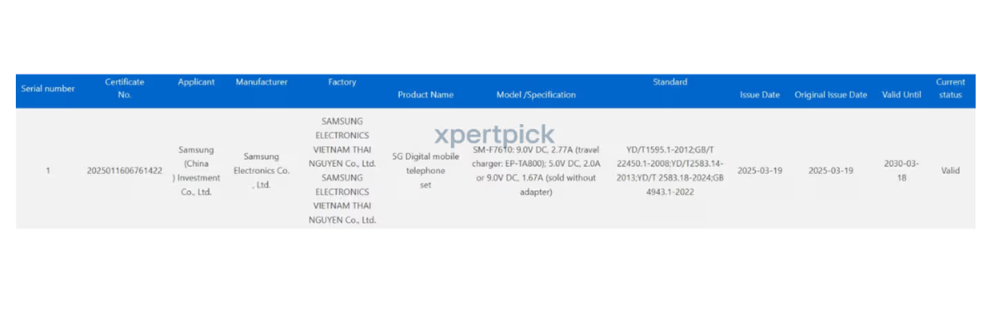 Galaxy Z Flip 7 FE đã xuất hiện trên 3C với mã model SM-F7610, dành cho thị trường Trung Quốc.